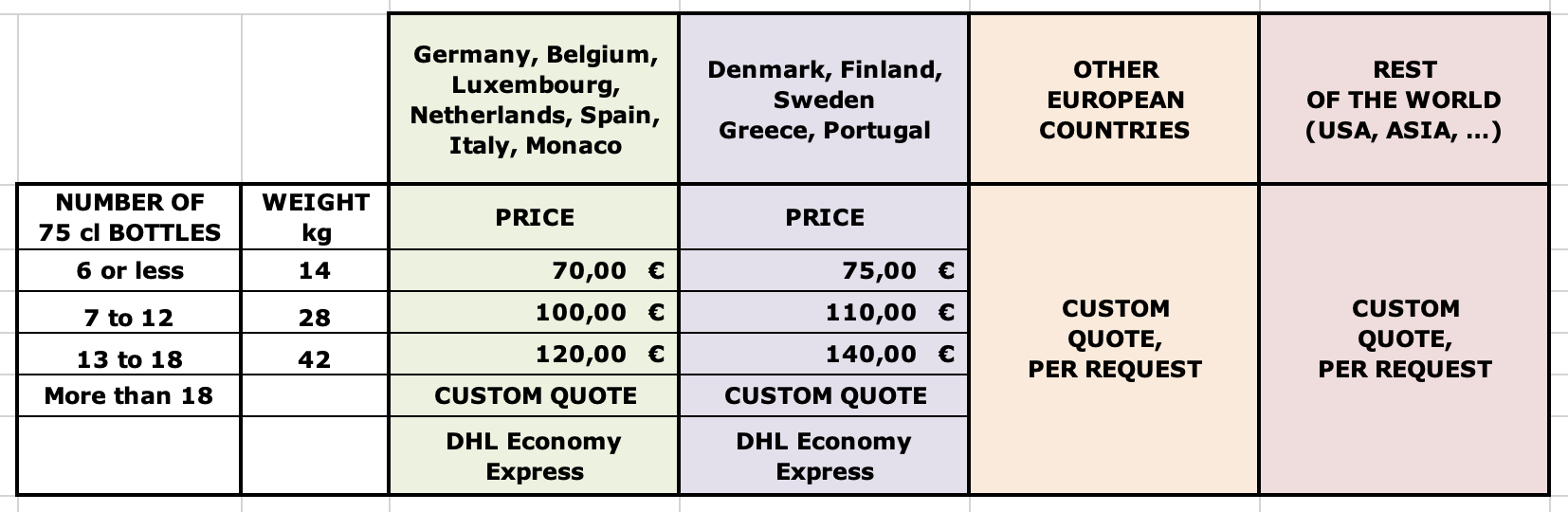 Se il vostro paese non è elencato sopra, vi preghiamo di contattarci prima dell'asta o il prima possibile dopo l'acquisto per discutere una soluzione di spedizione. Si prega di notare che in alcuni paesi è impossibile spedire il vino ai non professionisti.
