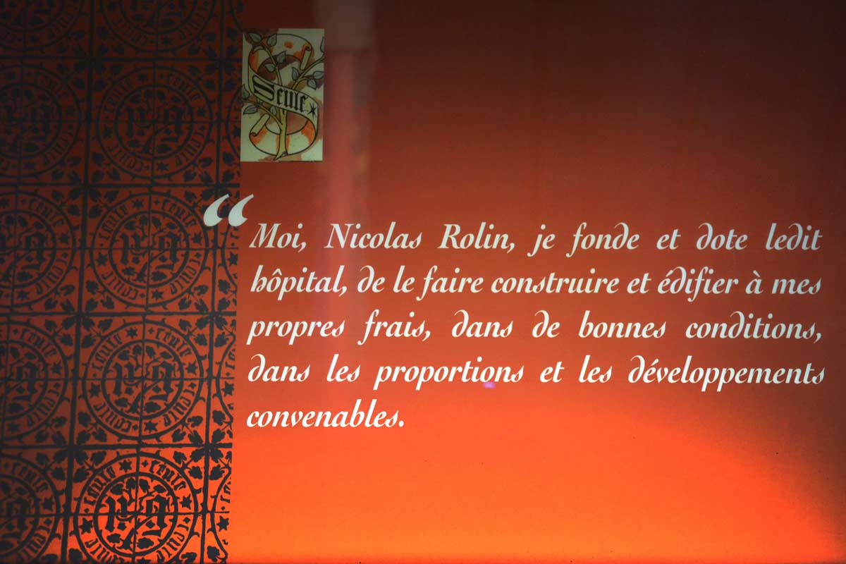 Nicolas Rolin and his wife Guigone de Salins made the Hôtel-Dieu a unique place in Beaune, with a genuine care function. Several communities of nuns and nurses, such as the Dames de la Charité and the Sœurs Hospitalières, cared for the sick and helped local residents, notably in the splendid Salle des Pôvres. This fundamentally universal spirit of charity has endured down the centuries and continues to this day. Today, the Hôtel-Dieu is an exceptional museum, a must-see in Beaune.
