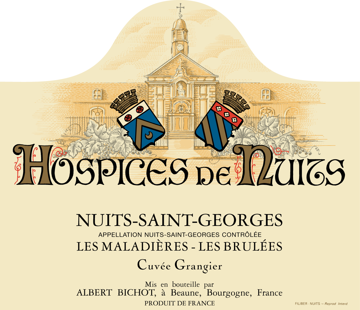 Ce Nuits-Saint-Georges Les Maladières – Les Brûlées – cuvée Grangier a été vinifié avec talent par le Domaine des Hospices de Nuits-Saint-Georges. Vendu chaque année aux enchères le deuxième dimanche de mars suivant la récolte, notre maison Albert Bichot se porte très régulièrement acquéreur de ce grand vin pour le compte de clients qui nous confient ensuite son élevage dans nos caves. Durant cette période importante, grâce à un travail méticuleux et un assemblage de fûts variés, nous développons encore sa complexité et son potentiel.